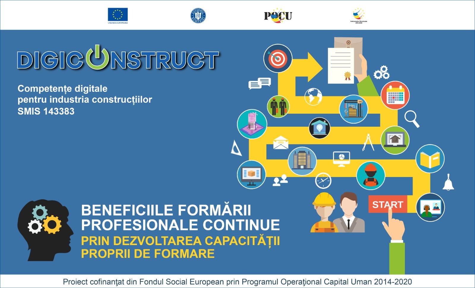 În lumina acestor aspecte, FPSC a dezvoltat în acest an capacitatea proprie de formare a 15 IMM-uri din construcții, în cadrul proiectului european ”DigiConstruct - Competențe digitale pentru industria construcțiilor (SMIS 143383), prin elaborarea unor strategii complexe de formare.